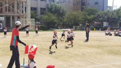 1年生は1時間目に続き、2時間目は運動会のかけっこの練習をしました。