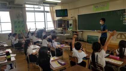 1組は国語、2組は算数の学習です。どちらのクラスの児童も、積極的に授業に取り組んでいました。