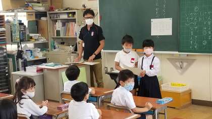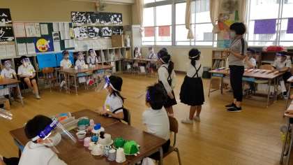 1年生は朝の健康観察等を子どもたちが進めていました。