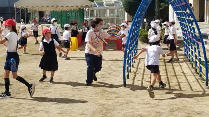 運動場の様子です。先生も一緒に楽しく遊んでいます。