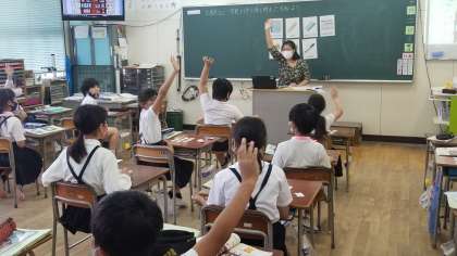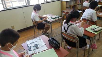 4年生の英語の様子です。文房具のカードでビンゴゲームをしていました。もちろん英語でです。
