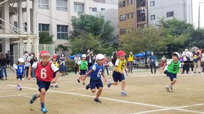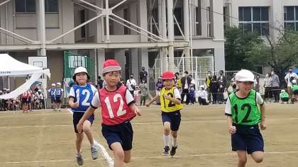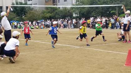 1年生は直線コースをかけっこしました。みんな一生懸命走りました。