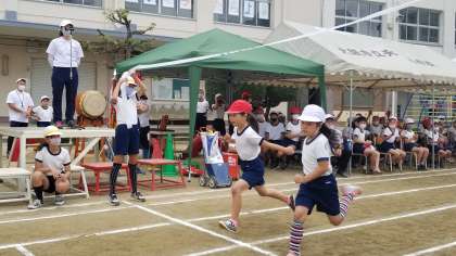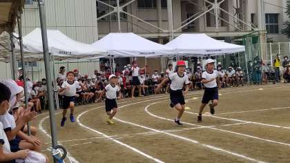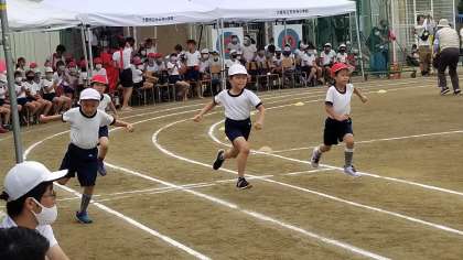 2年生は、初めてせセパレートコースで運動場を半周しました。最後まで走り切りました。