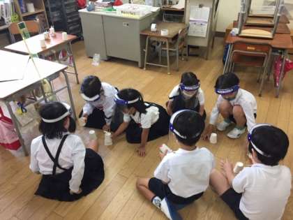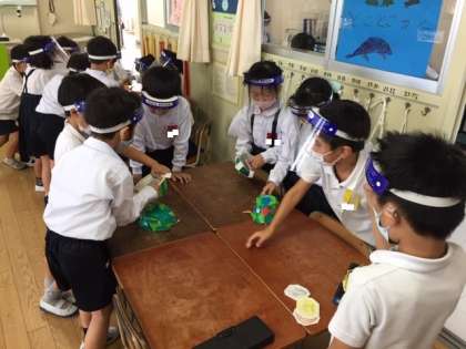 1・2年生のせいかつかの様子です。2年生が1年生を「おもちゃランド」に招待しました。