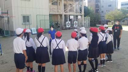 朝会が終わった後の様子です。代表委員が集められ、今後の打ち合わせをしています。