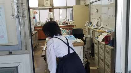 「放送委員の〇〇です。放送室の鍵を返しに来ました。失礼しました。」をお辞儀をして退室しました。正しい言葉遣い、あいさつができています。