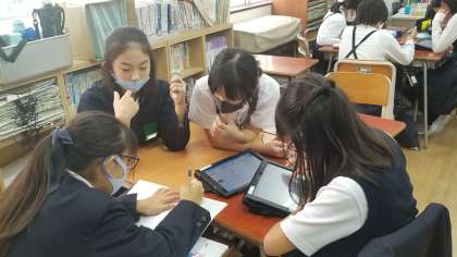 6年生の国語の様子です。「まちの未来をえがこう。」をテーマに、いろいろな観点から話し合い、未来を想像していました。