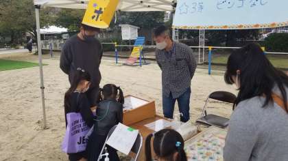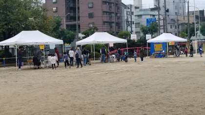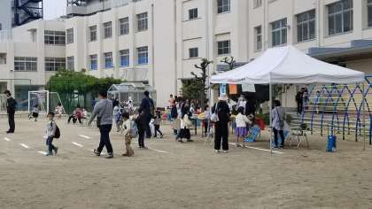 運動場のブースの様子です。午前中は1・2年生が楽しんでいます。