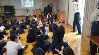 本日2時間目、多目的室で4年生の自転車講習会を行いました。講師は交通安全協会の方に来ていただきました。映像を活用したクイズ形式などで、わかりやすく安全な自転車の乗り方について学習しました。