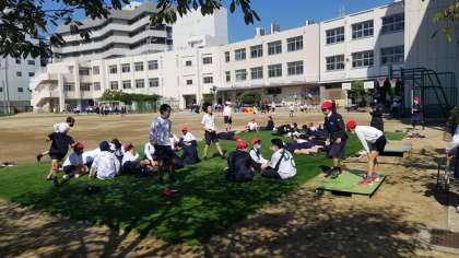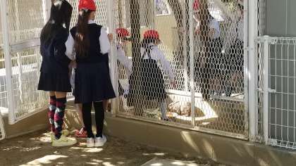 休み時間の様子です。今日はうさぎとのふれあいがありました。「うさぎかわいい」とふれあっていました。