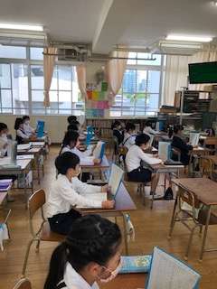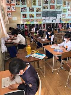 2−1は国語の黙読。静かに集中していました。3−1は真剣にテストに取り組んでいました。
