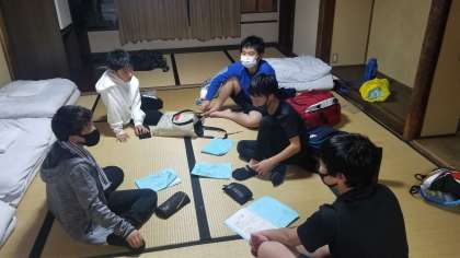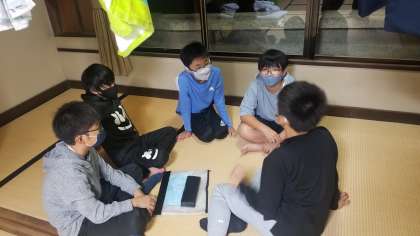 今日一日、よかったことや反省すべきことを話し合っていました。