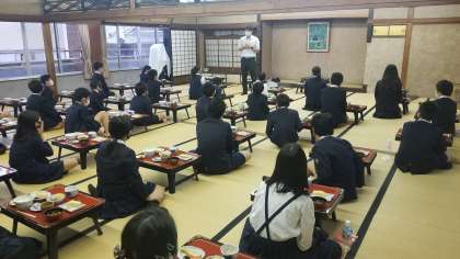 コロナ対策として、おしゃべりせずに食べています。今までにない対応ですが、みんな協力して行動できています。