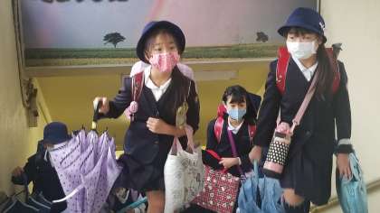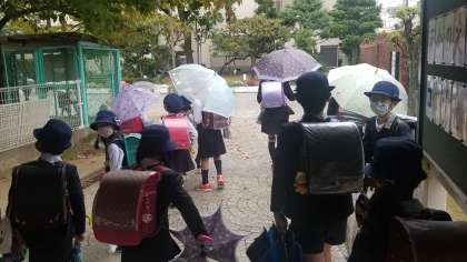 おはようございます。雨になりました。傘をさしての登校です。今日も一日安全で元気にすごしましょう。