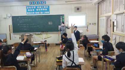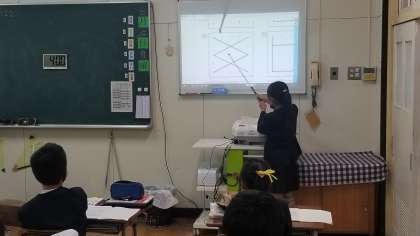 4年生の算数の様子です。いろいろな四角形の平行な直線の組の数を調べて、四角形を分類していました。しっかりと自分の考えを発表できていました。