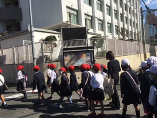 3時間目、2年生が「町たんけん」に出発しました。町の人たちが安全に楽しく暮らせる工夫を見つけます。