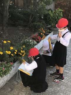 1年生が国語の学習「みつけたよ」で発表する「みつけたこと」を探していました。ありの様子や花の様子などを見つけていました