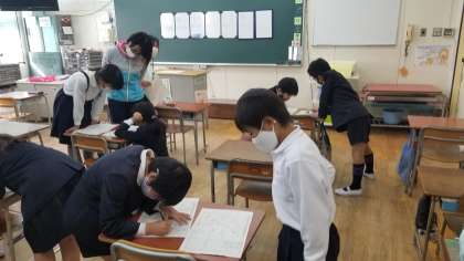 4年生の道徳の様子です。お友だちの「もちあじ」を交流していました。