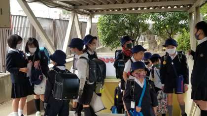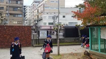 おはようございます。桜の葉も色づき始めました。秋の深まる中、子どもたちが登校してきました。