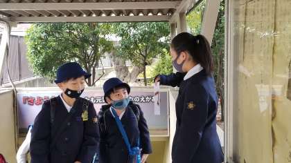 今日から、あいさつ週間が始まりました。自ら挨拶できた児童には、当番の児童から、今日の「キーワード」が書かれた用紙を見せてもらえます。「自ら進んであいさつができるようになろう」と児童会が考えた取り組みです。たくさんの児童がキーワードを見せてもらっていました。