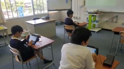 4年生の算数の様子です。四角形の対角線の特徴について考えていました。なかよしの児童もタブレットを活用して、しっかりと学習できていました。