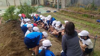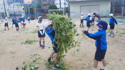 2年生のせいかつかの様子です。サツマイモの収穫をしました。芋のつるは縄跳びをする等して活用しました。