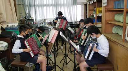 6年生の音楽の様子です。「風を切って」という曲をパートごとに練習をしていました。