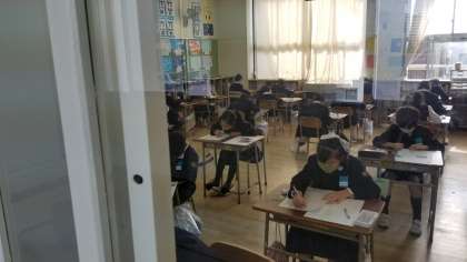 4年生の単元テストの様子です。真剣さと緊張感が廊下からでも感じられます。