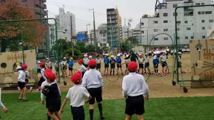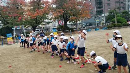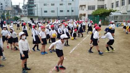 金曜日は、体育朝会の日です。今日は、グループに分かれての運動遊びをしました。運動委員会の説明を受けてから楽しんでいました