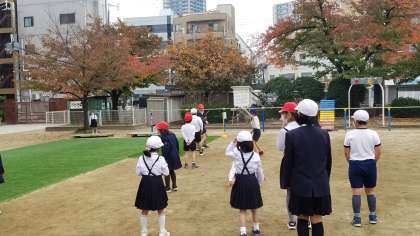 休み時間に「ふれあい遊び」をしました。縦割り班に分かれて遊びます。1年生から6年生まで一緒になって楽しく遊びました。