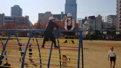 運動場で遊んでいます。とても気持ちよさそうに遊んでいます。