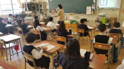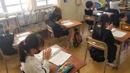2年生の音楽の様子です。「かぼちゃ」という曲を手拍子を付けて歌っていました。リズムや音の大きさから、だんだん人数が増えていく様子が感じられました。