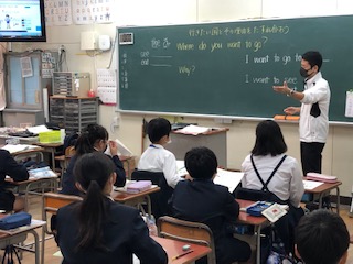 上段は、5年生の外国語の学習です。先生の発音をよく聞き、それをまねながら英文を読んでいました。