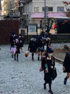 5年生は元気に出発しました。他学年も元気に登校してきました。