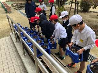 上段は、2年生の生活科。チューリップの球根を植えました。