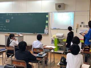 下段は、4年生の算数。分数の計算で、自分のやり方をみんなに発表していました。