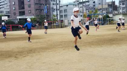 2年生の体育の様子です。いろいろな跳び方にチャレンジしていました。
