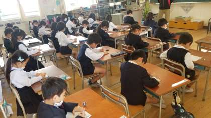 1年2組の様子です。漢字のテストをしていました。みんな集中して取り組んでいました。