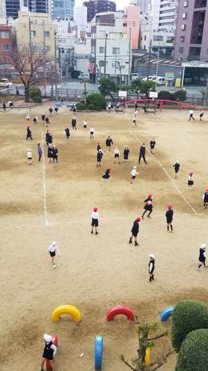 ドッジボールやサッカーなど、運動場をいっぱいに使って遊んでいます。