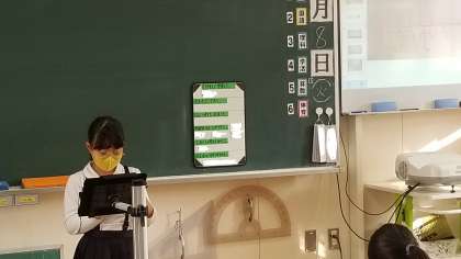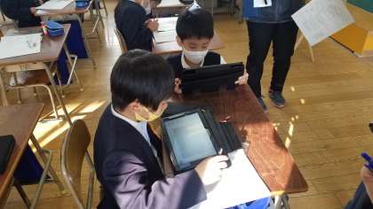 授業は、学習履歴を振り返り、自分の目標を決めるところから始まり、分数の表し方と仕組みや、同分母の分数の加法の計算方法を考えました。互いに考え方を話し合い、しっかりと発表することもできていました。