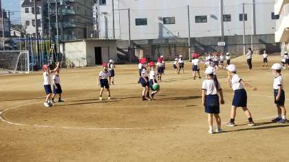 1年2組の体育の様子です。楽しくボールゲームをすることができていました。