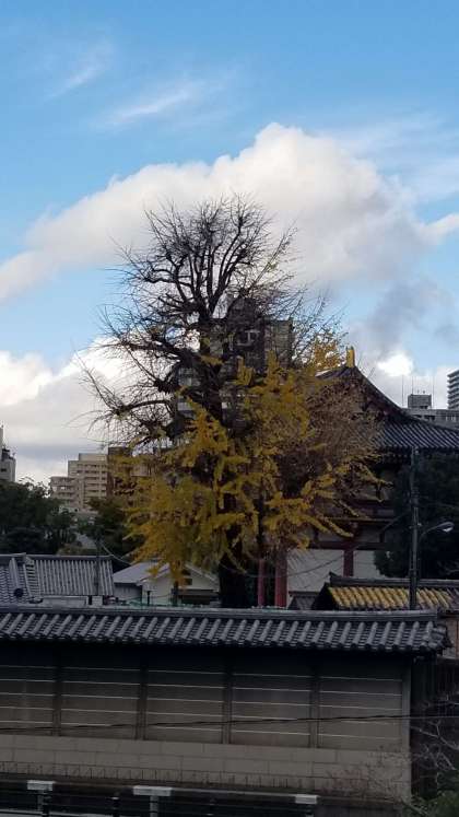 四天王寺の南門ちかくにある銀杏です。毎年見事な黄色に色づき、校舎から眺めることをたのしみにしていました。が、強風により残念ながら大部分が散ってしまいました。