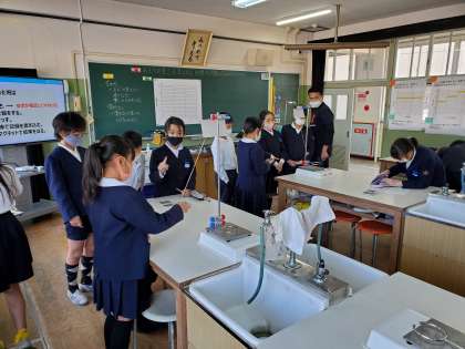 上段は、5年生の理科、振り子の実験をしていました。真剣な顔つきで振り子の振れる回数を記録していました。