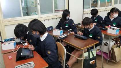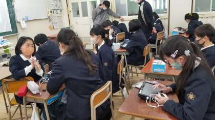 6年2組のプログラミング学習の様子です。試行錯誤しながら取り組んでいました。