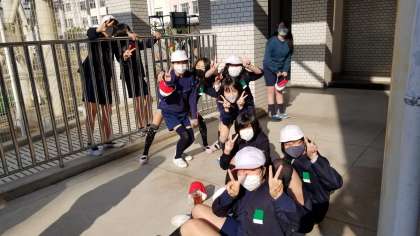 体育館前の児童に、「何してるの」と尋ねると、「日向ぼっこ」と笑顔で答えて、ポーズまで作ってくれました。本当に素敵な子どもたちです。
