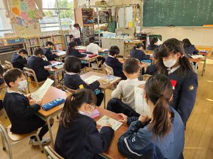 写真上:1年1組の様子です。3学期の目標を考えていました。どの学年も、まとめと次の目標にむかう準備をしていました。