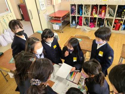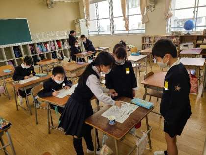 教室ではお絵描きや九九のすごろくで遊んでいました。