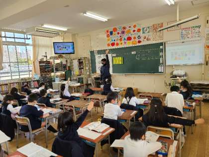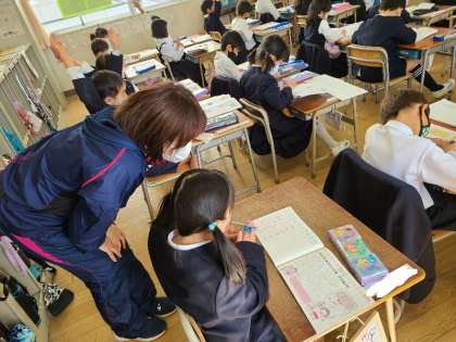 1年1組の算数の様子です。大きい数を数える学習です。まとめの問題では満点の花丸をもらっていました。
