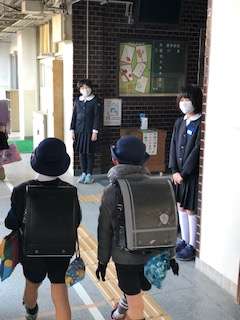 おはようございます。1月18日(月)、快晴の朝です。今週からあいさつ運動週間で、運営委員会児童が、地下道出入口と正門エントランス前とで登校してくる児童に大きな声であいさつをしていました。もちろんあいさつされた児童もあいさつを返していました。朝の清々しい風景です。