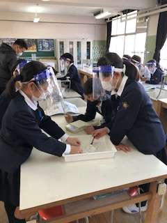 下段は、5年生の理科。物の溶け方の学習で、水に溶けたものの重さはどうなるかを実験して調べていました。